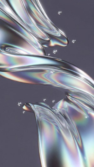 Iridescent liquid glass ribbons with floating droplets